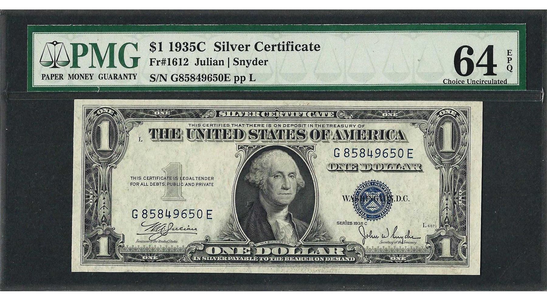 1935C $1 Silver Certificate Note Fr.1612 PMG Choice Uncirculated 64EPQ