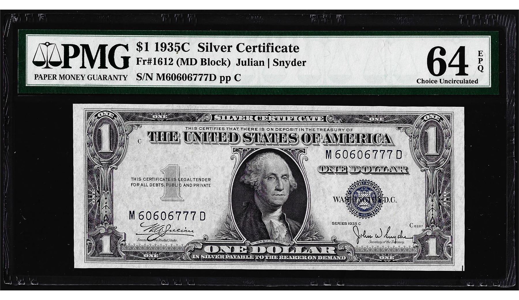 1935C $1 Silver Certificate Note Fr.1612 PMG Choice Uncirculated 64EPQ