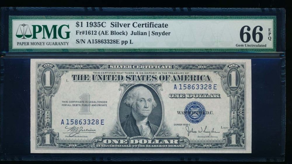 One 1935C $1 Silver Certificate PCGS 66EPQ.