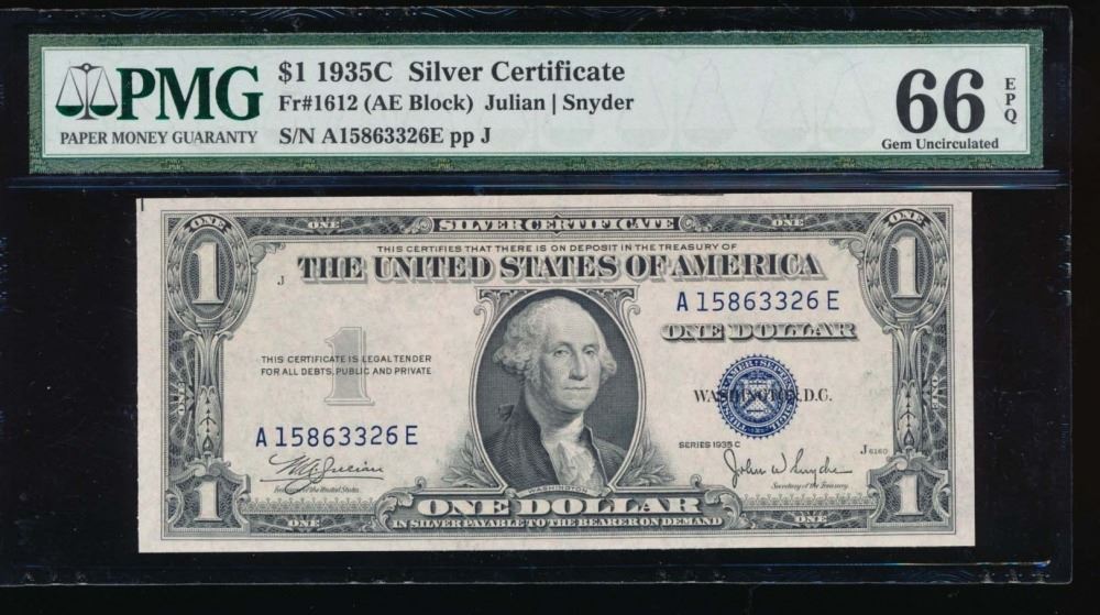 One 1935C $1 Silver Certificate PMG 66EPQ.