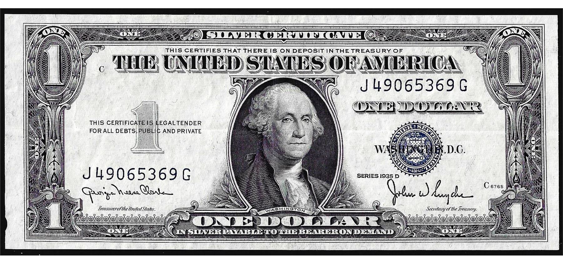 One 1935D $1 Silver Certificate Misalignment ERROR Note.