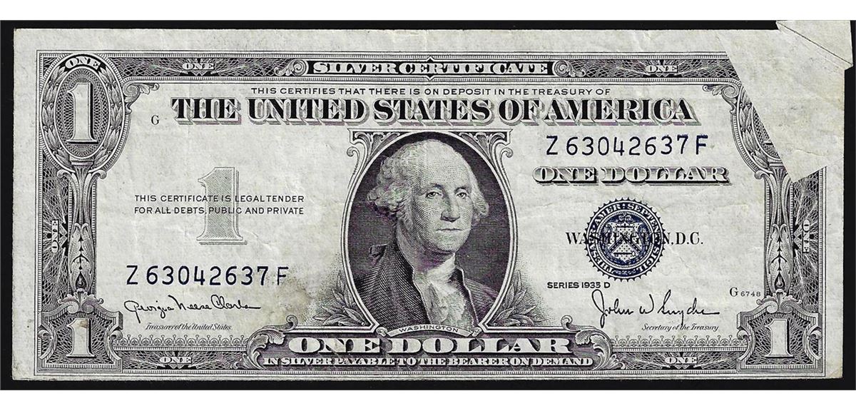 One 1935D $1 Silver Certificate Note ERROR Gutter Fold.