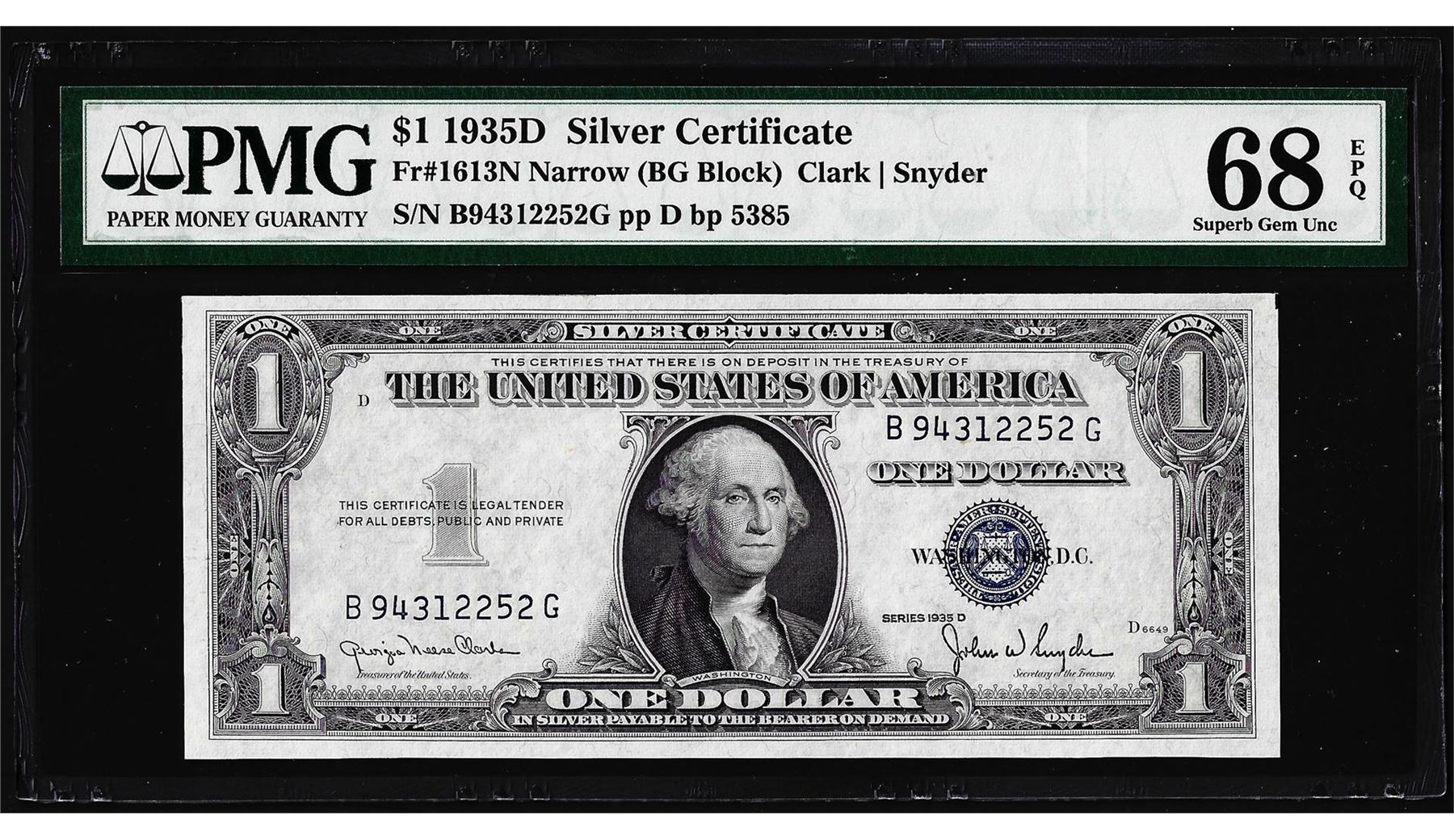 1935D $1 Silver Certificate Note Fr.1613N PMG Superb Gem Uncirculated 68EPQ