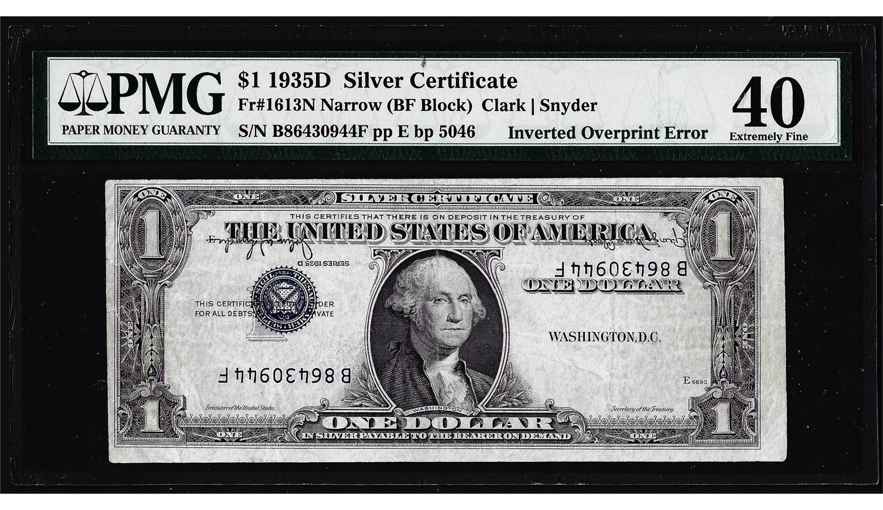 One 1935D $1 Silver Certificate Note Inverted Overprint ERROR PMG Extremely Fine 40. PMG Certified.