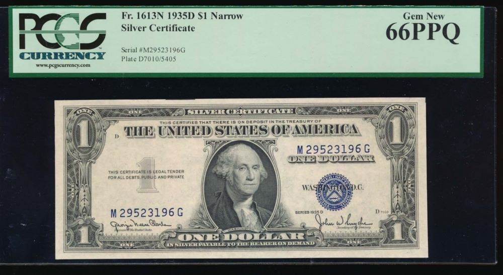 One 1935D $1 Silver Certificate PCGS 66PPQ.