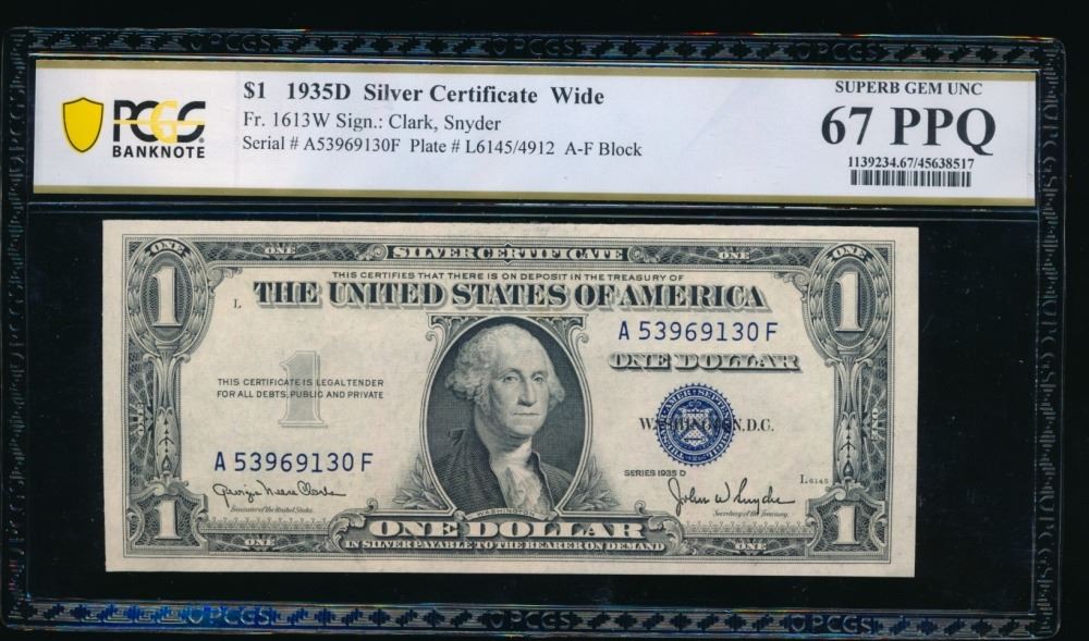 One 1935D $1 Silver Certificate PCGS 67PPQ.