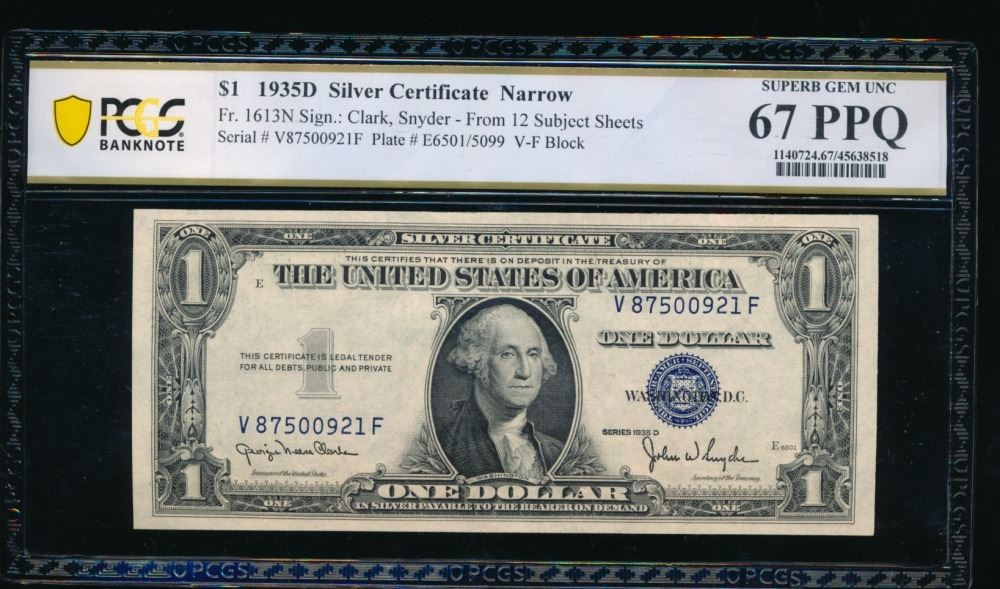 One 1935D $1 Silver Certificate PCGS 67PPQ.