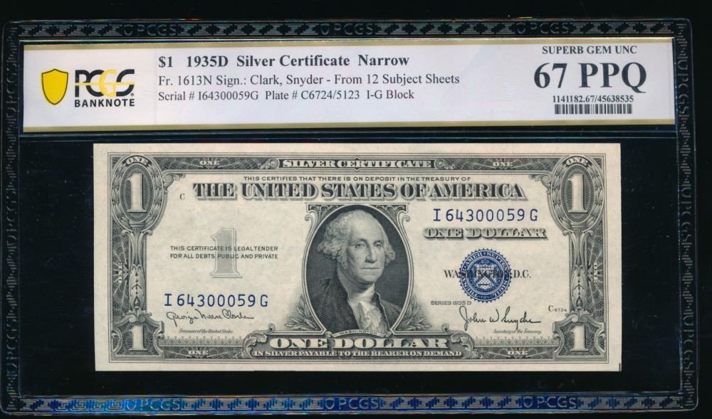 One 1935D $1 Silver Certificate PCGS 67PPQ.