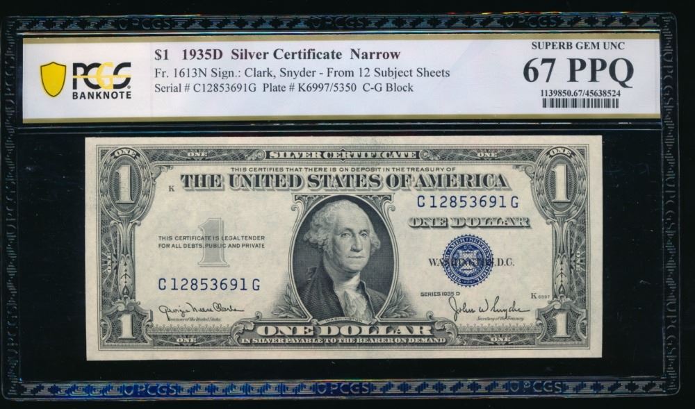 One 1935D $1 Silver Certificate PCGS 67PPQ.