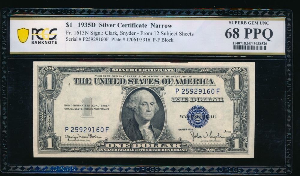 One 1935D $1 Silver Certificate PCGS 68PPQ.