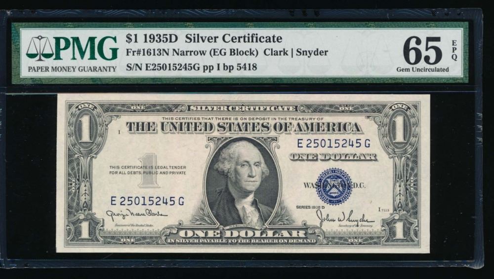 One 1935D $1 Silver Certificate PMG 65EPQ.