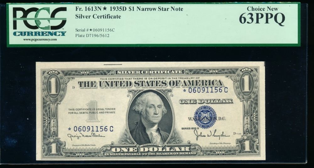 One 1935D $1 Silver Certificate Star Note PCGS 63PPQ.