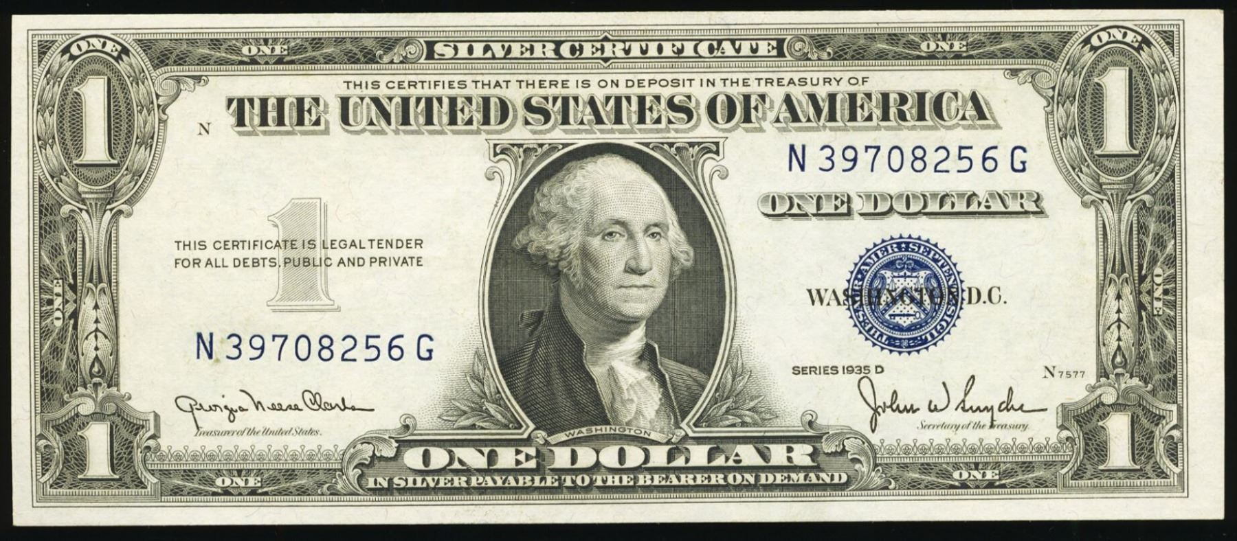 One 1935D $1 Silver Certificate.