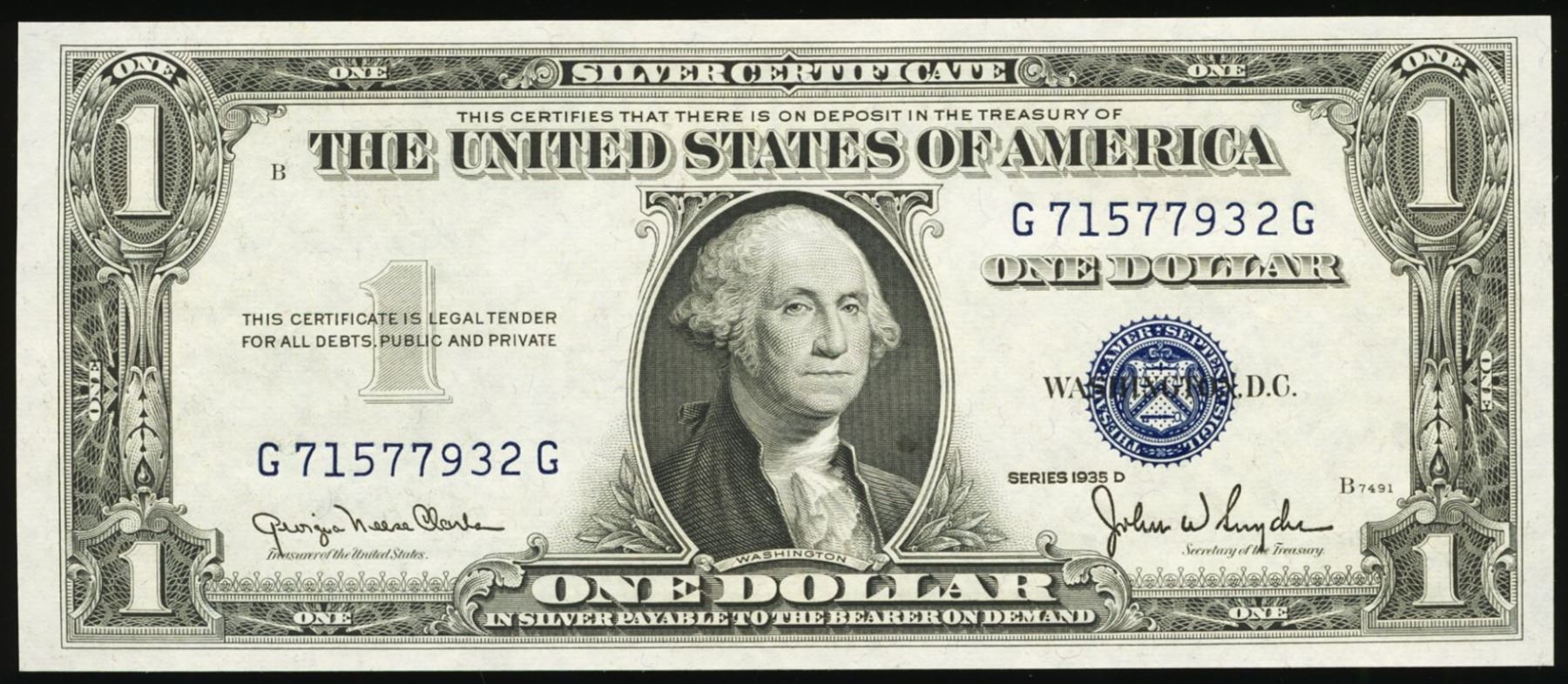 One 1935D $1 Silver Certificate.