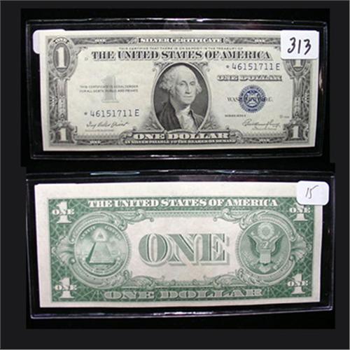 1935E $1.00 Silver Cert. Currency Error - Miscut on Reverse (Star Note)