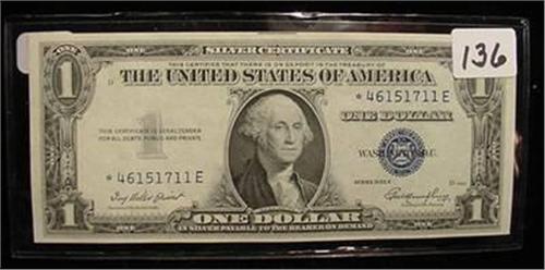 1935E $1.00 Silver Cert. Currency Error - Miscut on Reverse (Star Note)
