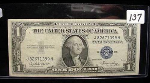 1935E $1.00 Silver Cert. Currency Error - Major Miscut on Reverse (Type 2)