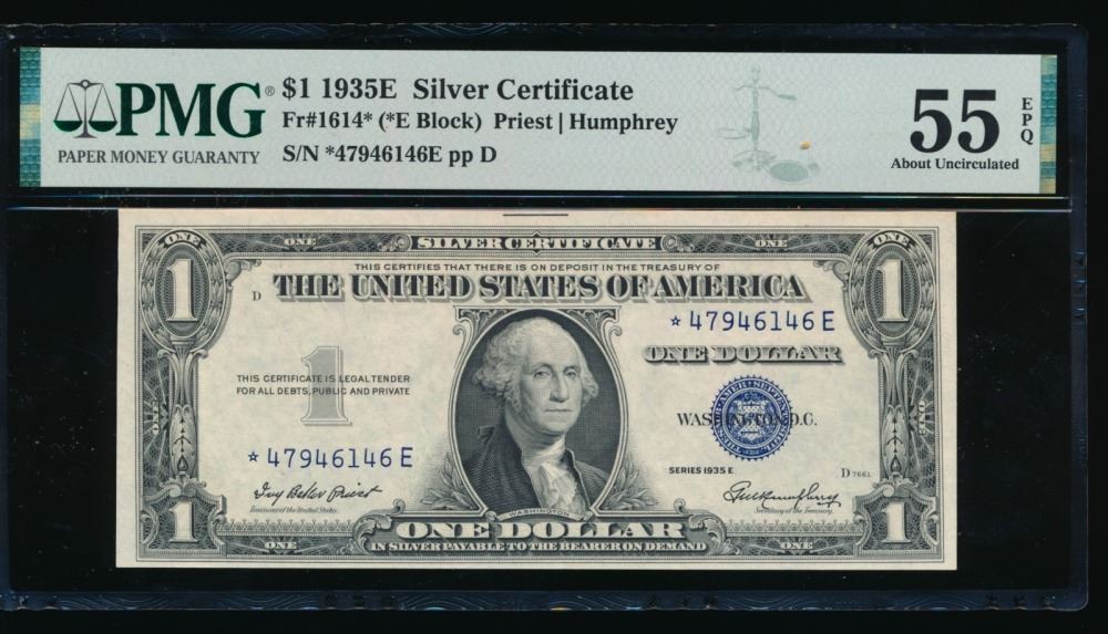 One 1935E $1 STAR Silver Certificate PMG 55EPQ.