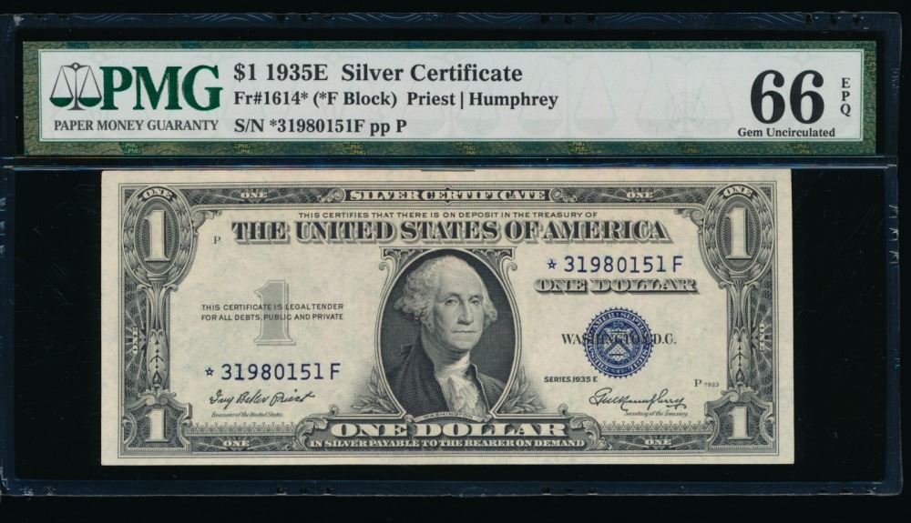 One 1935E $1 STAR Silver Certificate PMG 66EPQ.