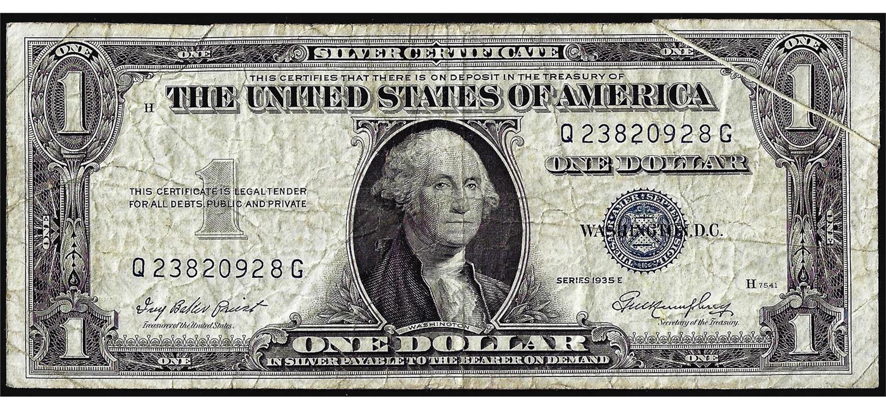 One 1935E $1 Silver Certificate Gutter Fold ERROR Note.