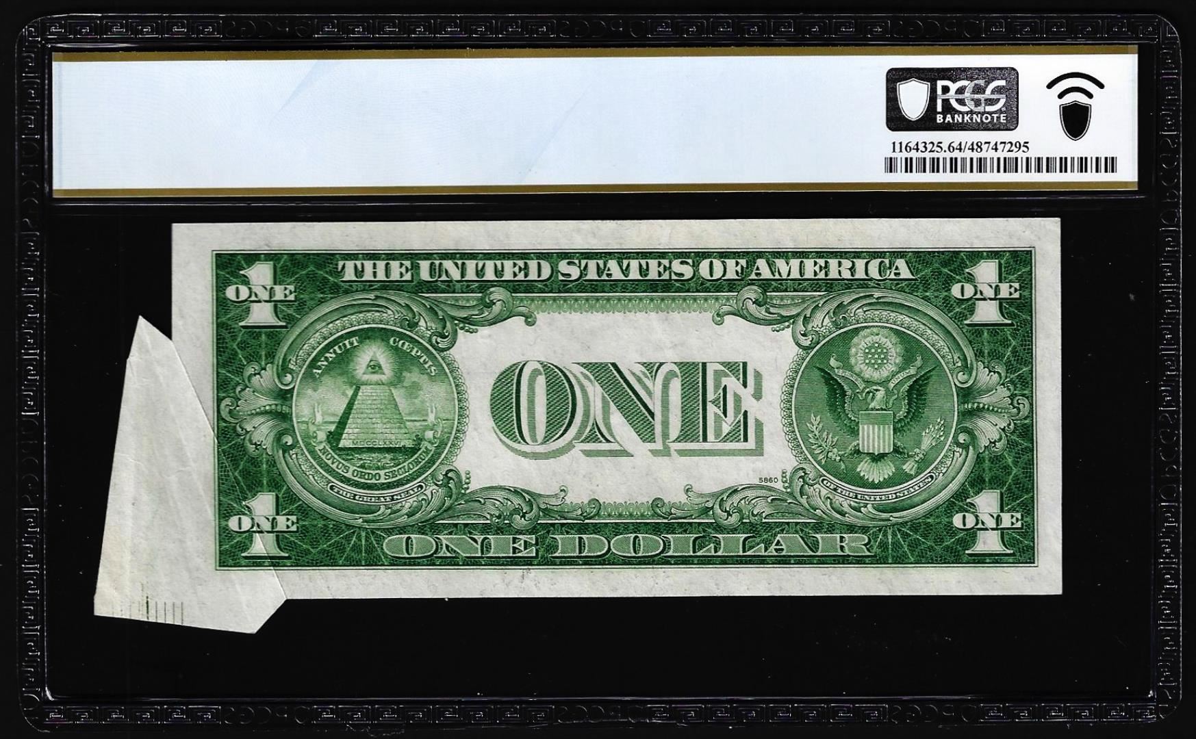 One 1935E $1 Silver Certificate Note Cutting Error w/Tab Fr.1614 PCGS Choice Unc 64PPQ. PCGS Graded.