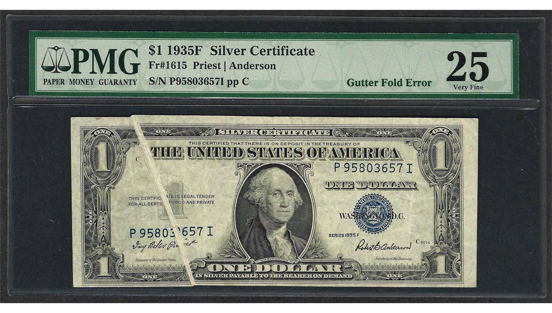 1935E $1 Silver Certificate Note ERROR Gutter Fold Fr.1614 PMG Choice Very Fine