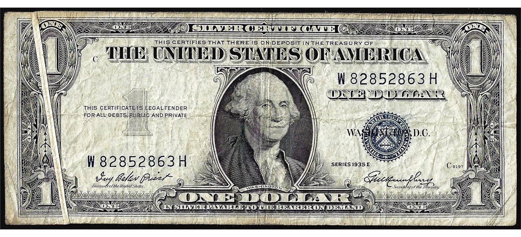 One 1935E $1 Silver Certificate Note Gutter Fold Error.