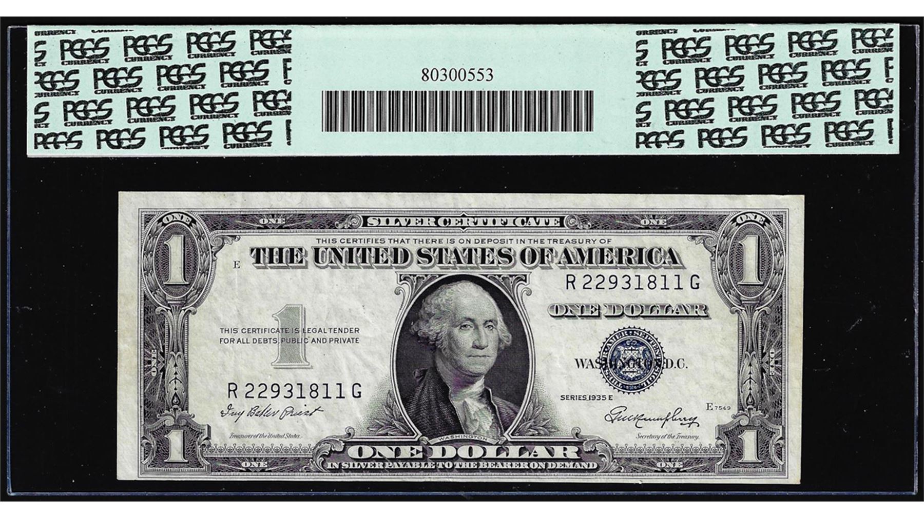 One 1935E $1 Silver Certificate Note Misaligned Back Print ERROR Fr.1614 PCGS About New 50. PCGS Graded.