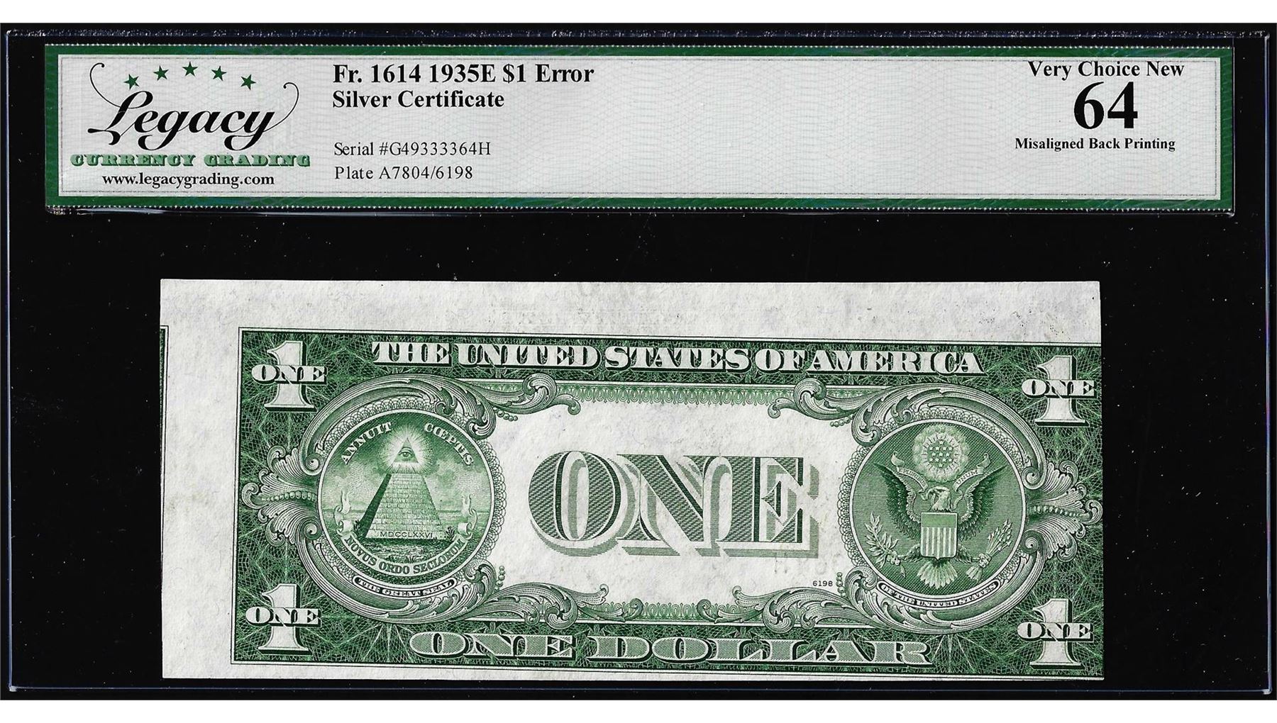 1935E $1 Silver Certificate Note Misaligned Printing Error Legacy Very Choice New 64