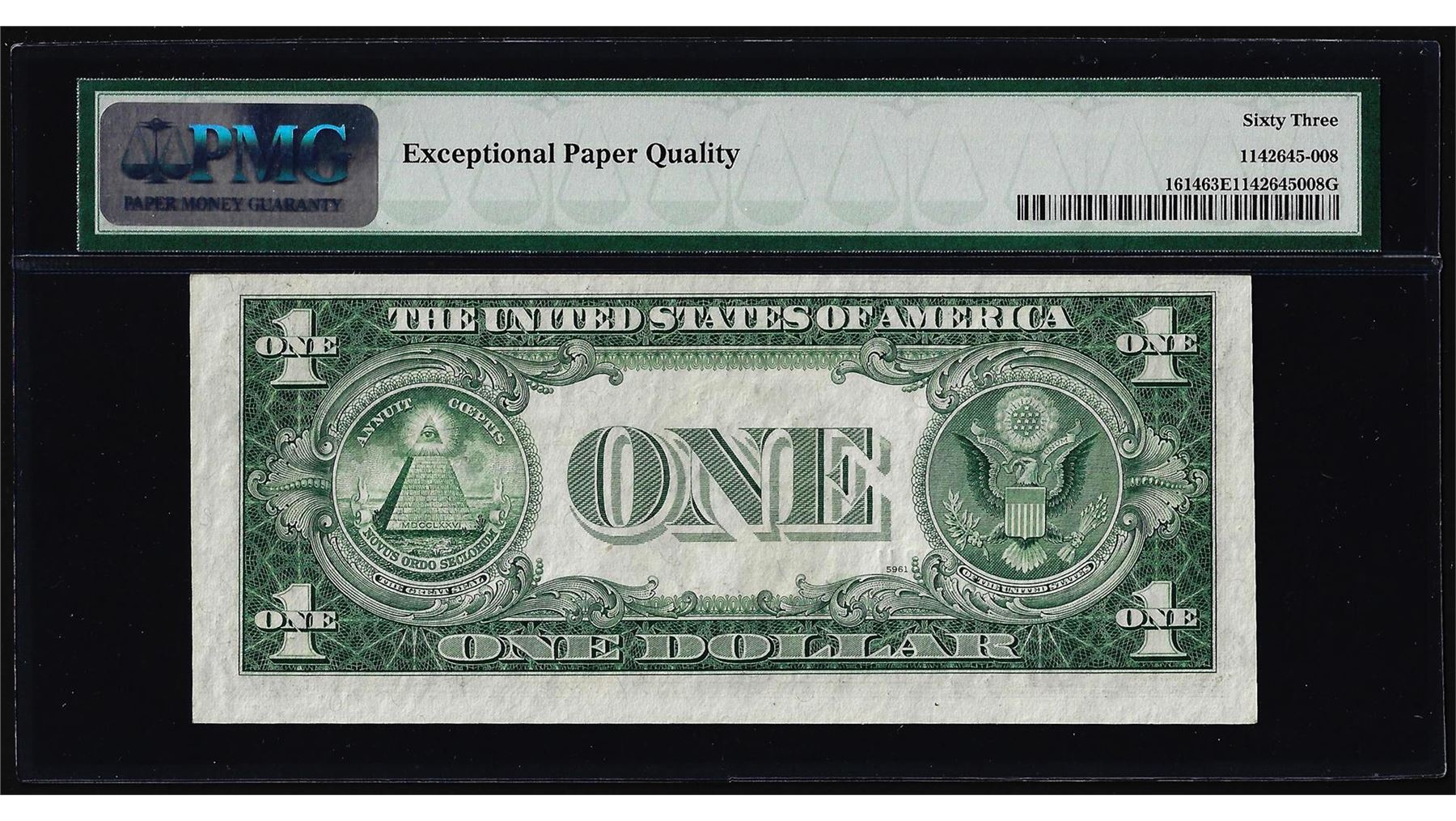 One 1935E $1 Silver Certificate Note Mismatched Serial Number ERROR PMG Choice Unc. 63EPQ. PMG Certified.