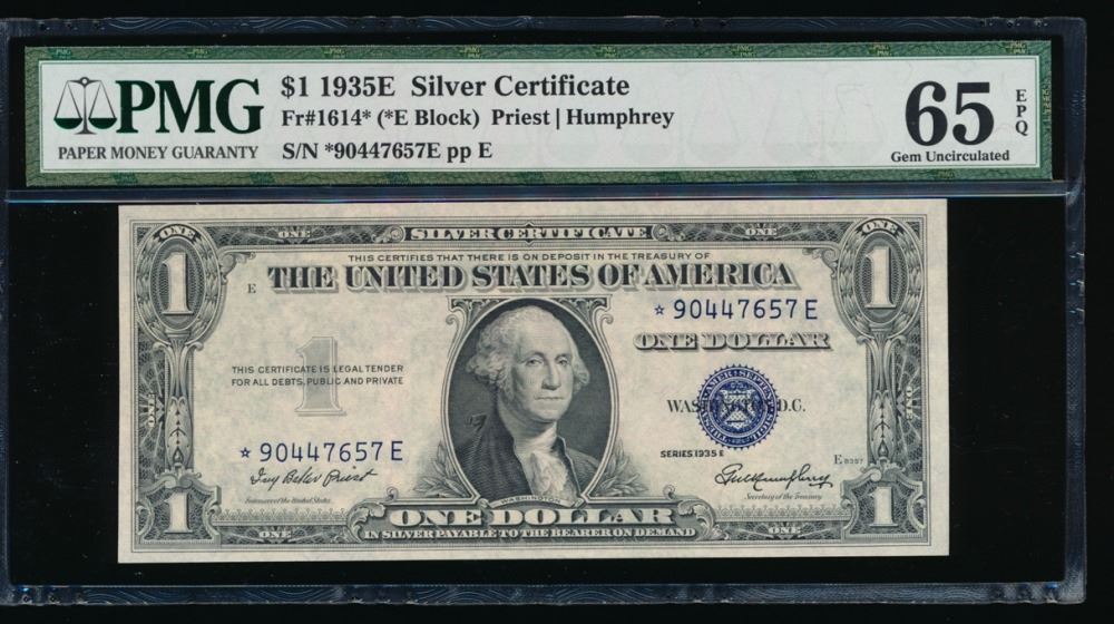 One 1935E $1 Silver Certificate PMG 65EPQ.