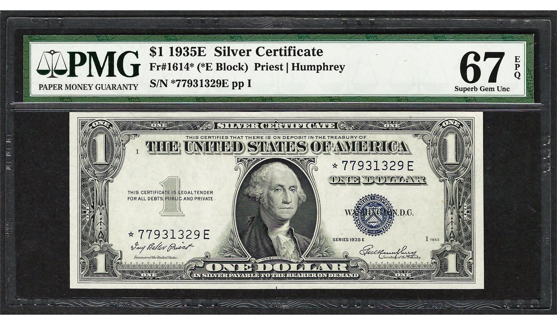 1935E $1 Silver Certificate STAR Note Fr.1614* PMG Superb Gem Uncirculated 67EPQ