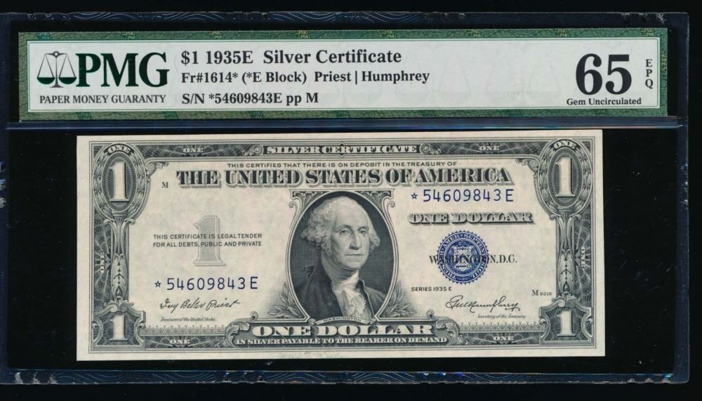 One 1935E $1 Silver Certificate STAR Note PMG 65EPQ.