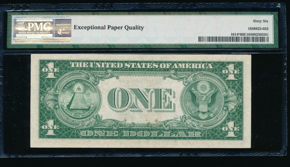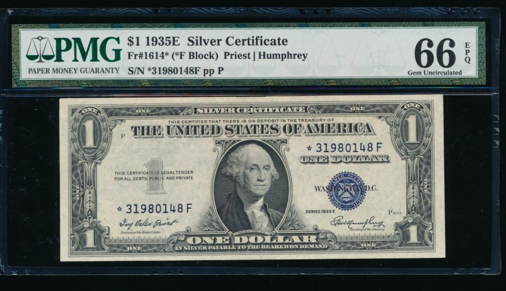 One 1935E $1 Silver Certificate STAR Note PMG 66EPQ.