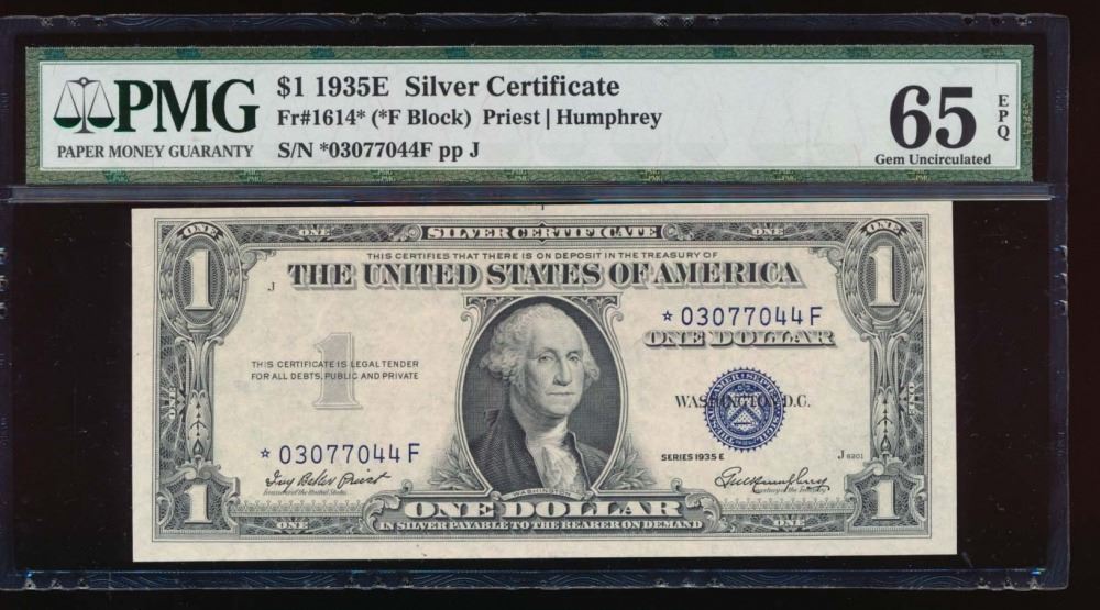 One 1935E $1 Silver Certificate Star Note PMG 65EPQ.