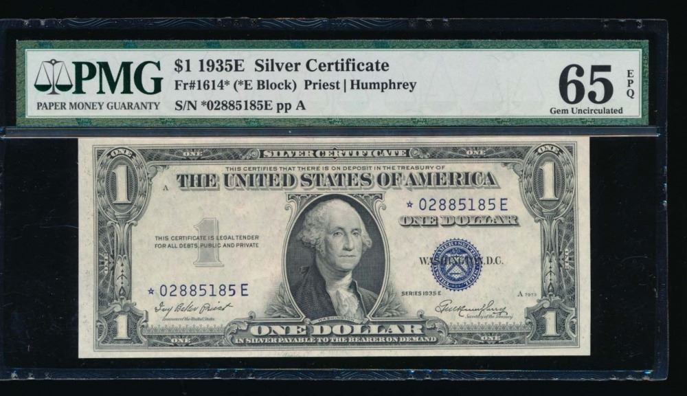 One 1935E $1 Silver Certificate Star Note PMG 65EPQ.