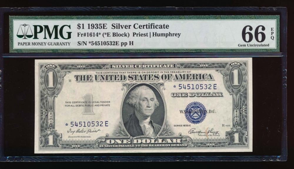 One 1935E $1 Silver Certificate Star Note PMG 66EPQ.