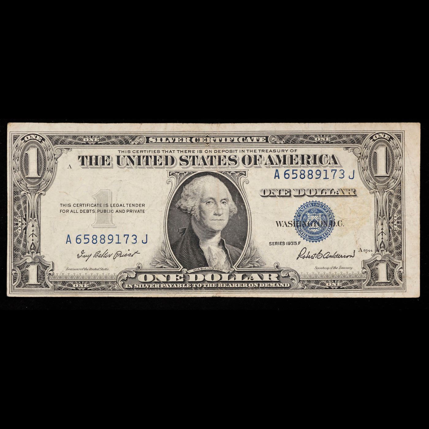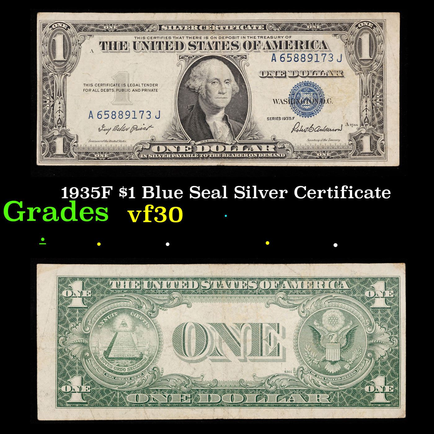 1935F $1 Blue Seal Silver Certificate Grades vf++.