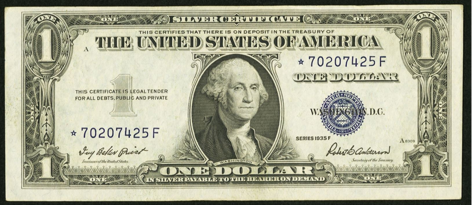 One 1935F $1 STAR Silver Certificate Fr. 1615.