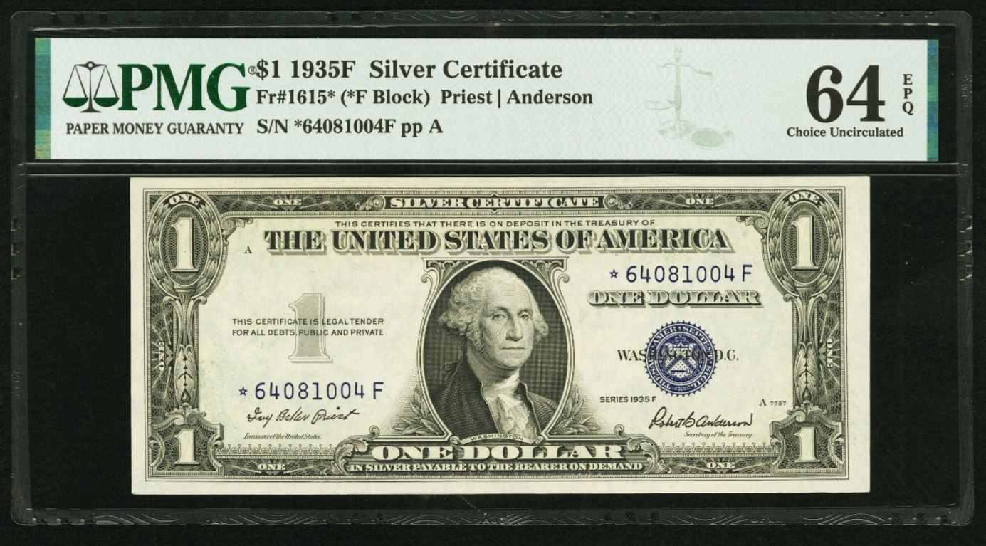 One 1935F $1 STAR Silver Certificate PMG 64EPQ.