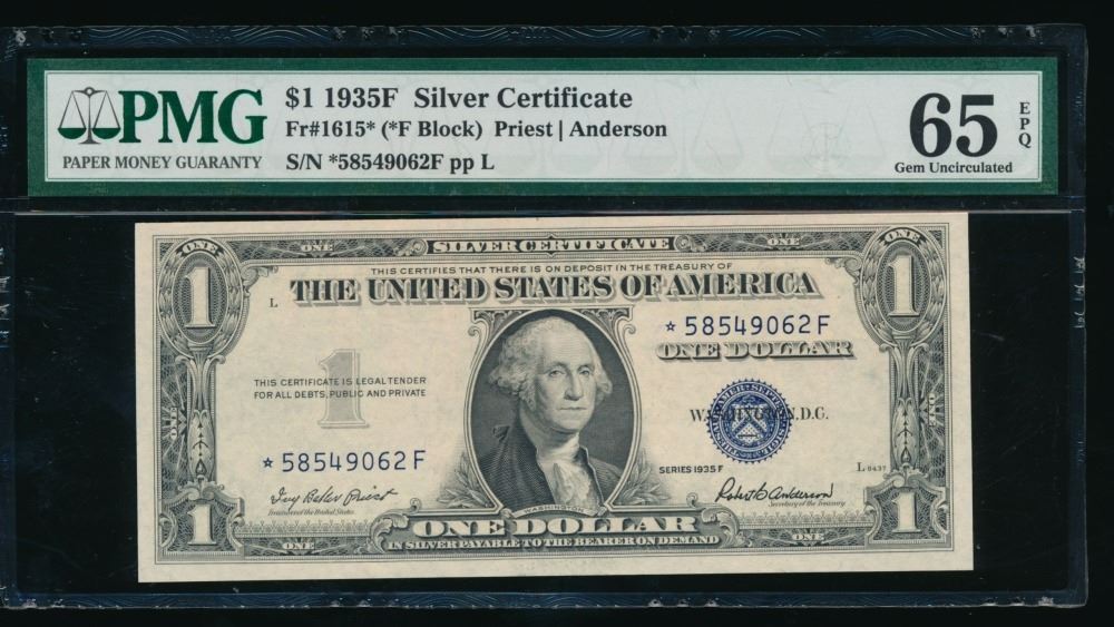 One 1935F $1 STAR Silver Certificate PMG 65EPQ.