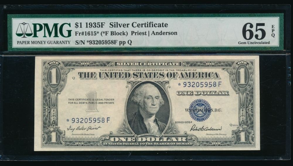 One 1935F $1 STAR Silver Certificate PMG 65EPQ.
