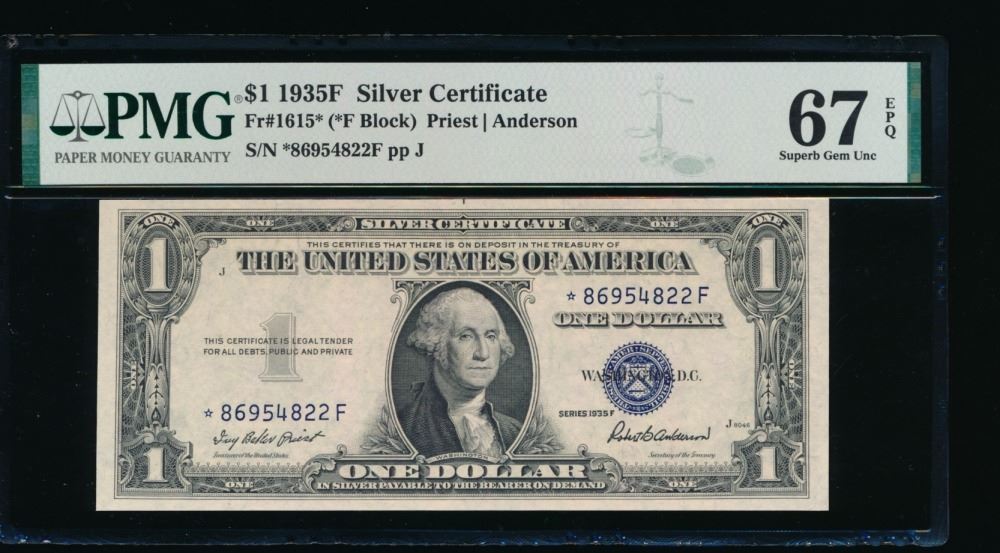 One 1935F $1 STAR Silver Certificate PMG 67EPQ.