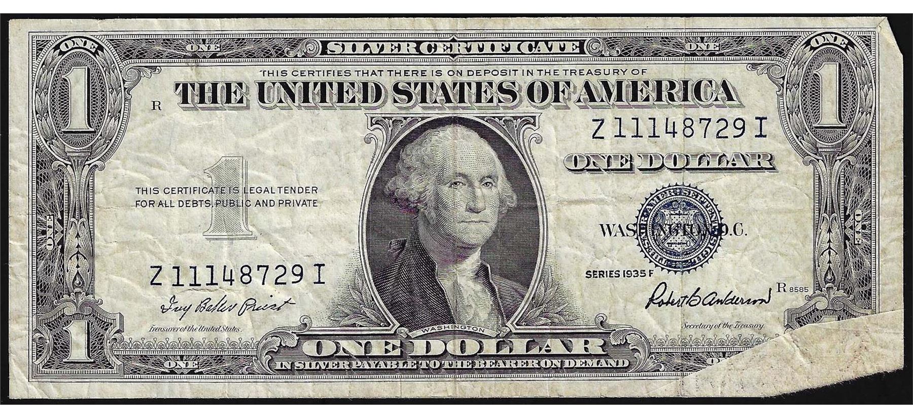 One 1935F $1 Silver Certificate Note Foldover ERROR.