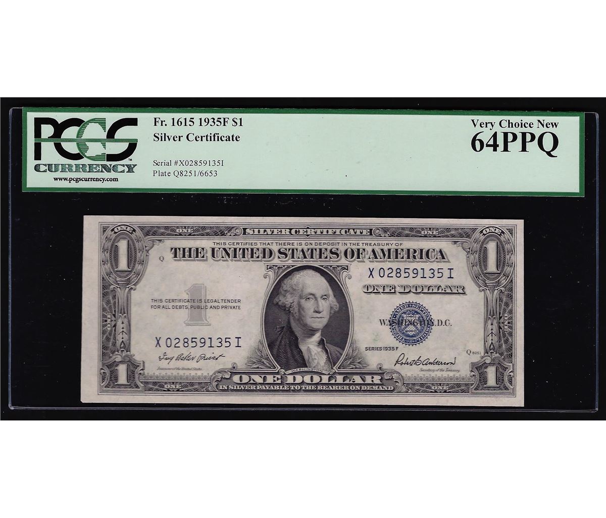 One 1935F $1 Silver Certificate Note PCGS Very Choice New 64PPQ. PCGS Graded.