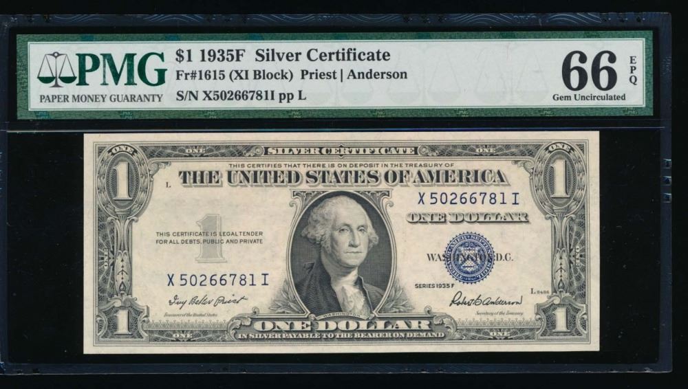 One 1935F $1 Silver Certificate PMG 66EPQ.
