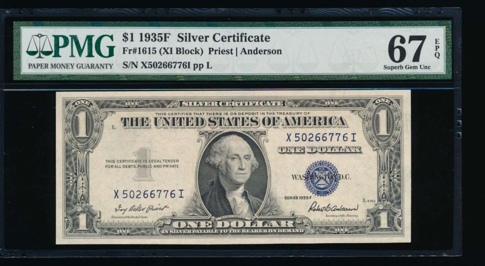 One 1935F $1 Silver Certificate PMG 67EPQ.