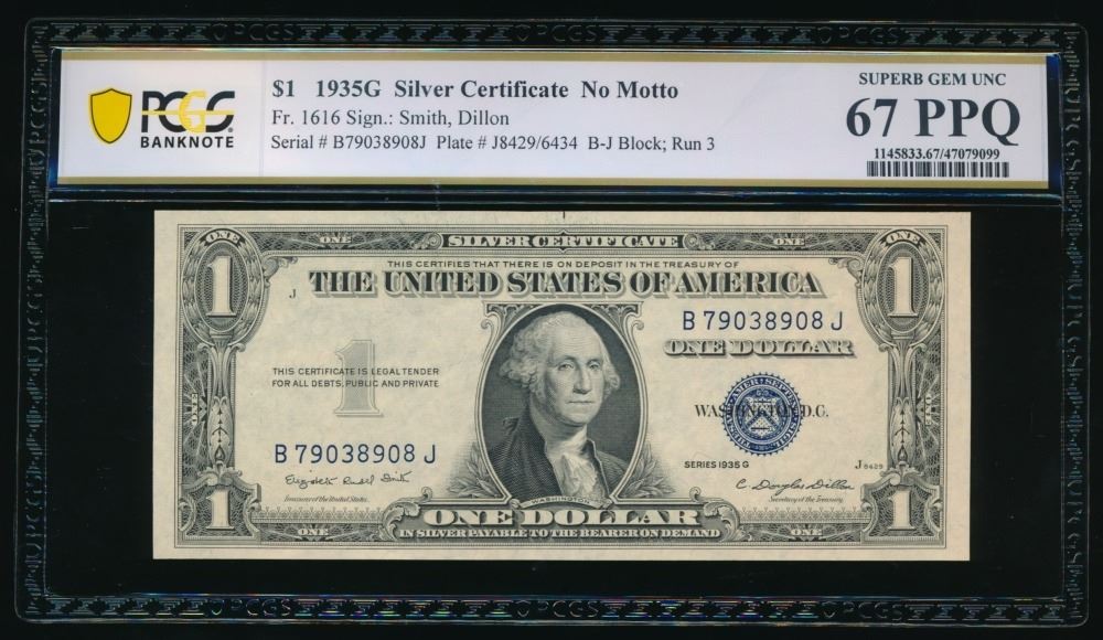 One 1935G $1 Silver Certificate PCGS 67PPQ.