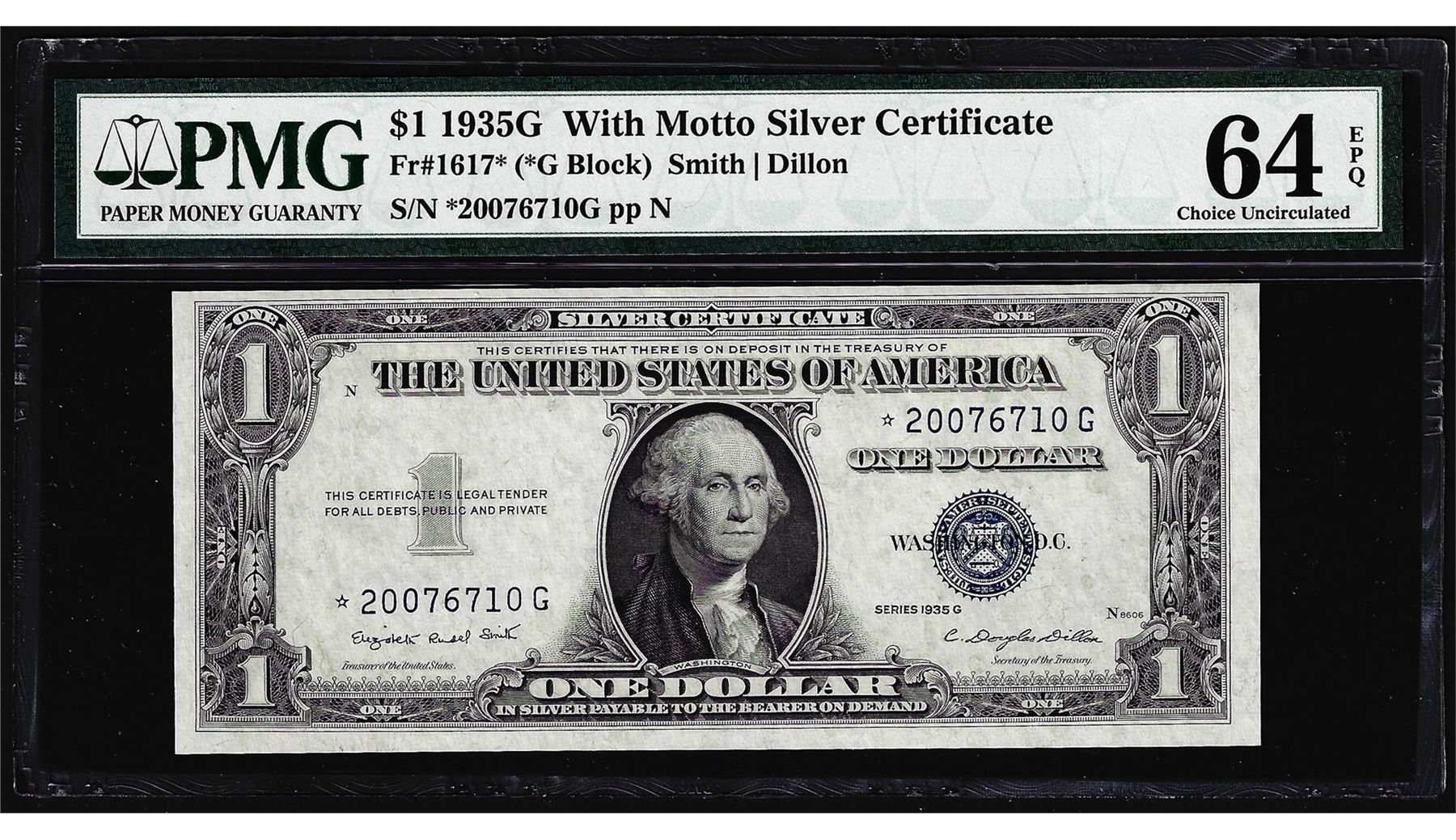 One 1935G $1 Silver Certificate STAR Note Fr.1617* PMG Choice Uncirculated 64EPQ. PMG Certified.