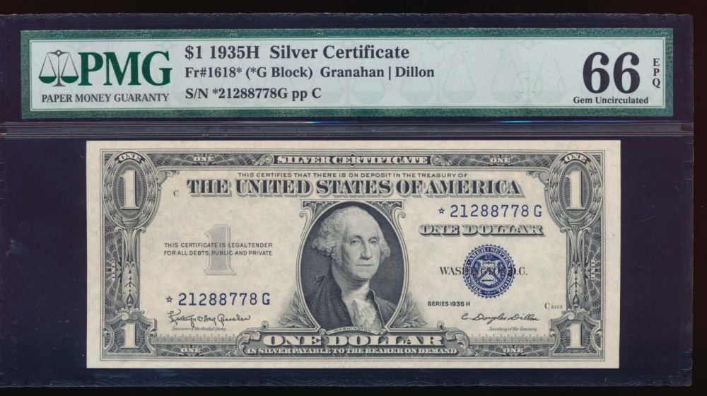 One 1935H $1 Silver Certificate PMG 66EPQ.